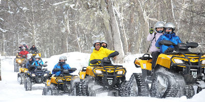 Se trata de un paseo guiado en la montaña, donde tendrá la posibilidad de manejar un cuatriciclo con orutas Can Am, en medio de un bosque nevado durante unos 40 minutos.